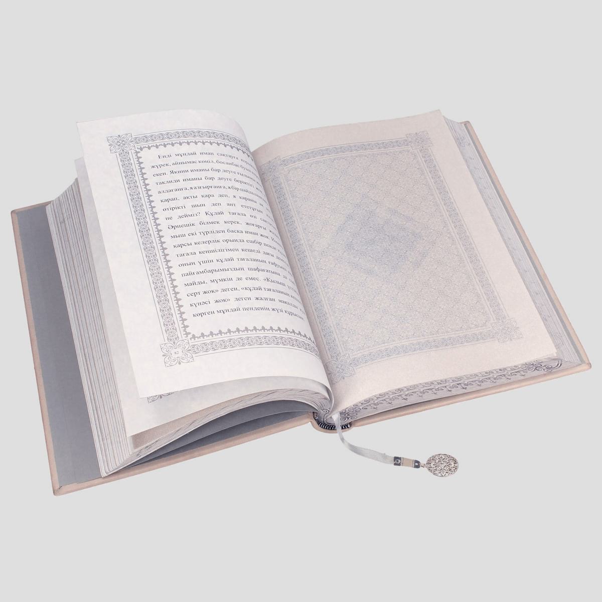 Unikatową edycję zaprojektowano w stylu nawiązującym do sztuki kazachskiej, z bogatymi srebrzonymi bordiurami, w których wykorzystane zostały charakterystyczne ornamenty narodowe. Całość utrzymana w jednolitej srebrno-szarej kolorystyce z granatowym lub czarnym kolorem skóry na oprawie.