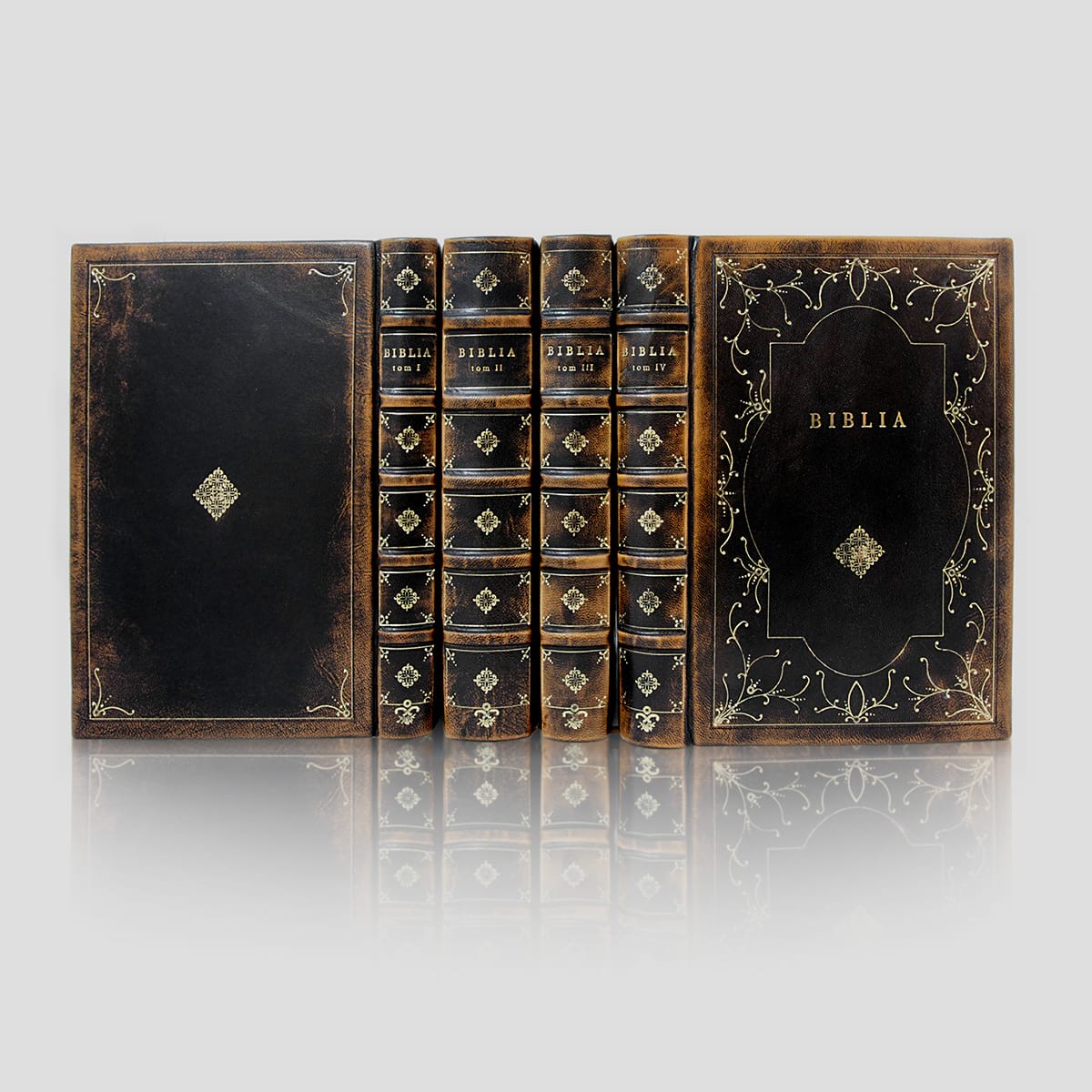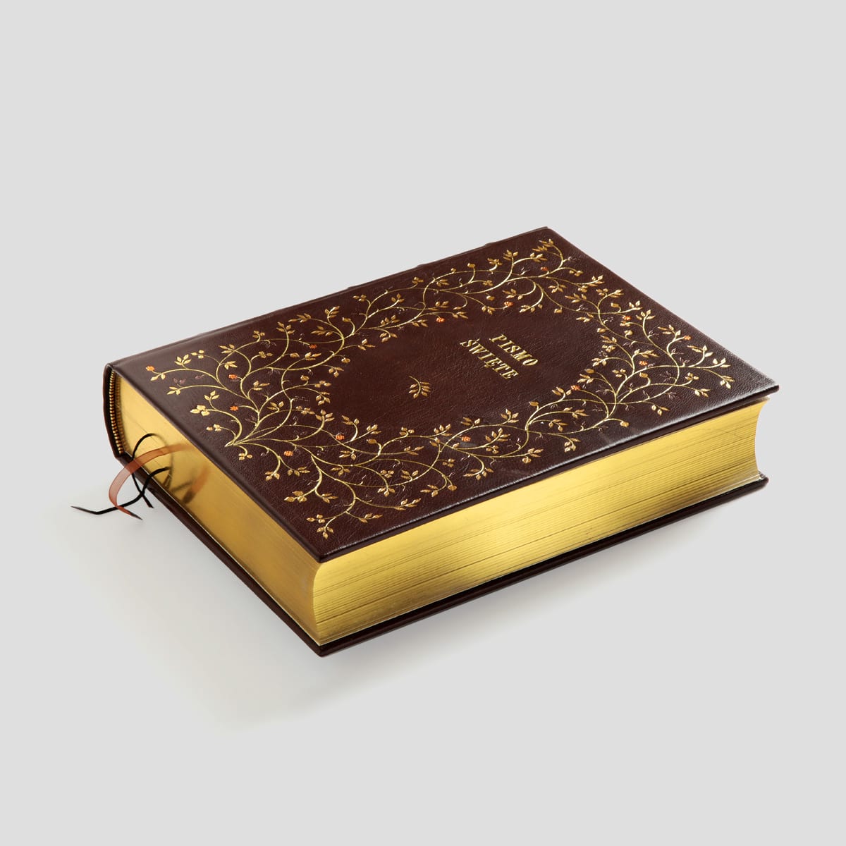 Każdy może stać się posiadaczem Pisma Świętego w pięknej artystycznie zdobionej oprawie w wybranym przez siebie stylu i kolorze skóry. Na oprawie tłoczymy inicjały właściciela, co stwarza indywidualną i niepowtarzalną całość.