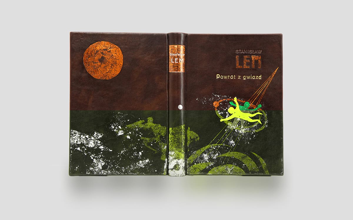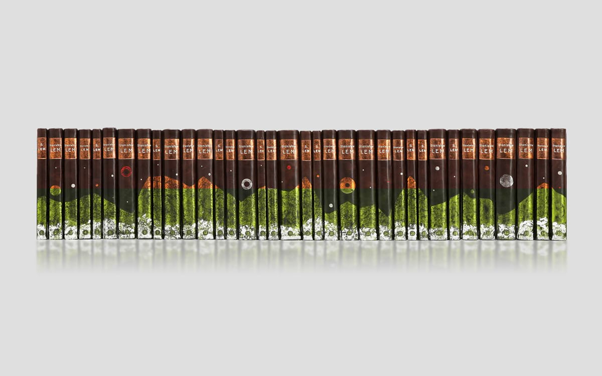 Unikatowa oprawa w skórę wykonana ręcznie, przy zastosowaniu nowatorskich technik introligatorskich. Na grzbietach wszystkich tomów jest wspólny motyw, który rozwija się indywidualnie na przednich i tylnych okładkach każdej z książek.