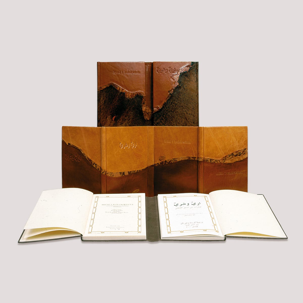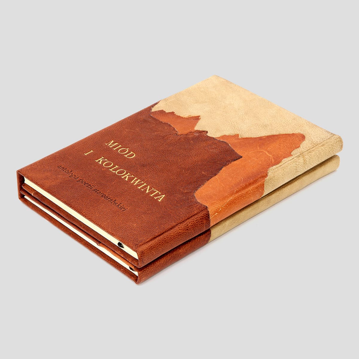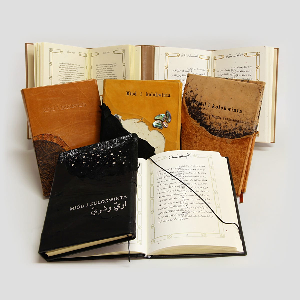 Poezja staroarabska stanowi najwspanialszy i najstarszy zabytek literatury Arabów. Twórczość literacka przed islamem przekazywana była przez pokolenia w tradycji ustnej i została spisana dopiero setki lat później. Tomik zawiera najpiękniejsze, przepojone zmysłowością wiersze powstałe przed Mahometem lecz niezwykle współczesne w swojej formie. Introligatorska oprawa z wykorzystaniem naturalnych brzegów różnych skór i wężowymi intarsjami jest niezwykle ekspresyjną aluzją do surowego i nieprzyjaznego krajobrazu pustynnych terenów półwyspu Arabskiego. Ten ascetyczny rodzaj oprawy, który po raz pierwszy zastosowaliśmy przy tej edycji nazwaliśmy „jeziora”, ponieważ naturalne krawędzie skóry przypominają jego linię brzegową.