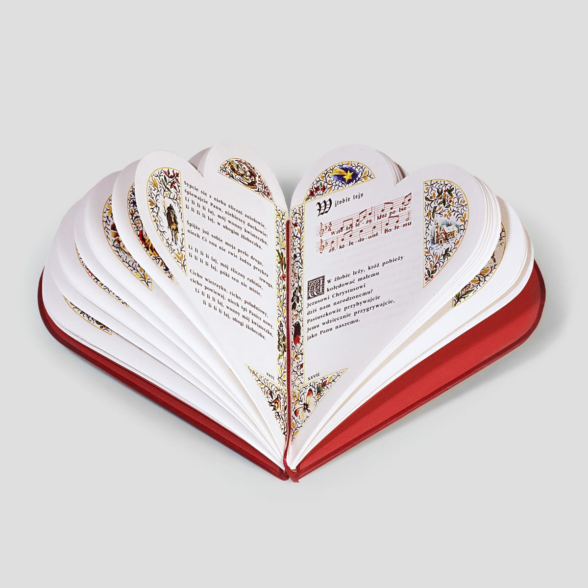 Ma on kształt serca, a ponadto wszystkie strony zdobione są kolorowymi bordiurami o tematyce bożonarodzeniowej. W swojej budowie książka nawiązuje do kształtu popularnych w średniowieczu graduałów i modlitewników.