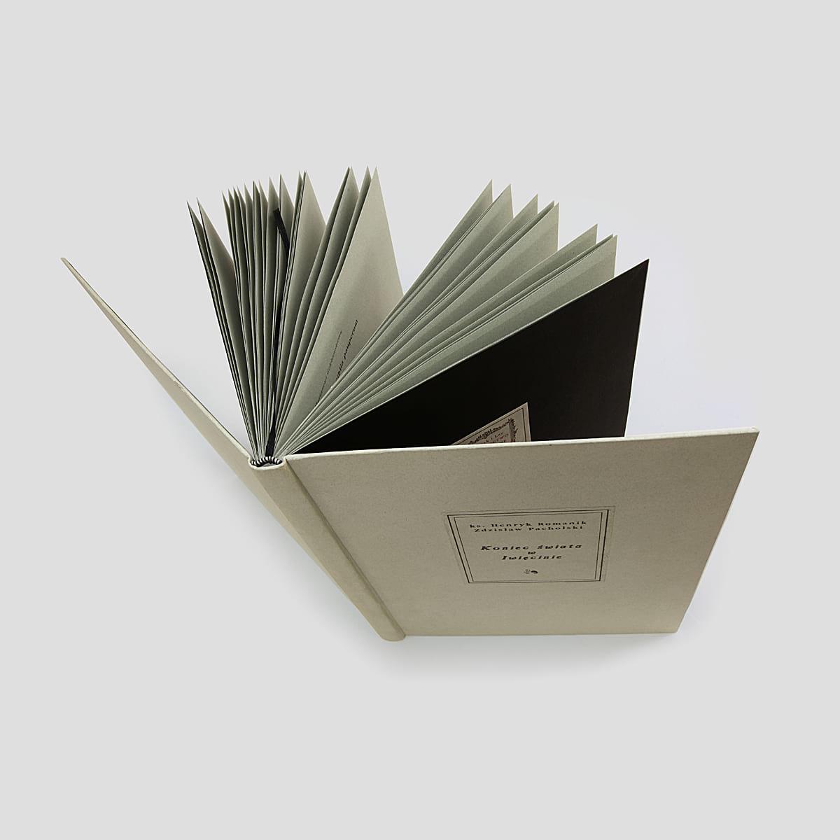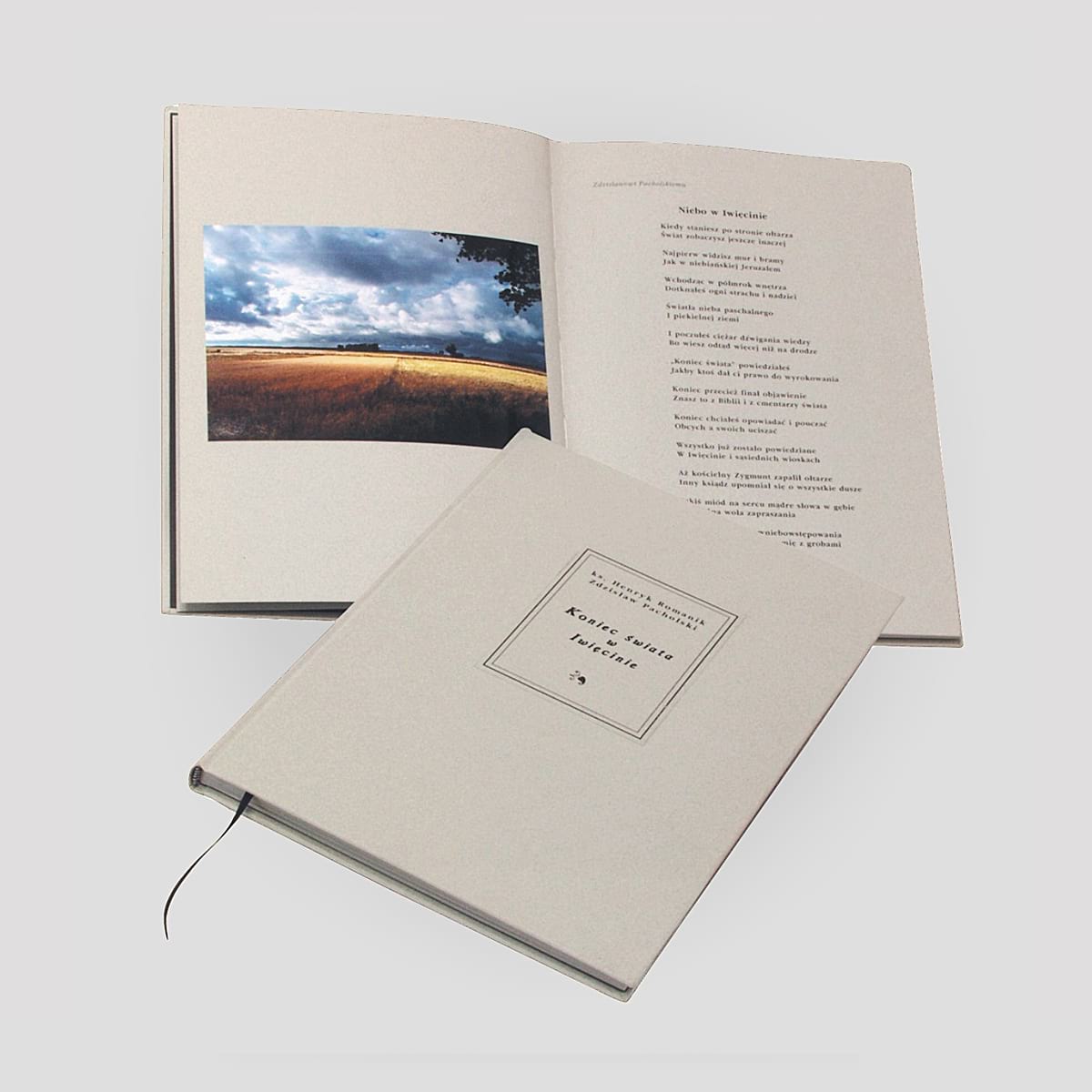 Henryk Romanik napisał wiersze o iwięcińskich pejzażach i średniowiecznym wiejskim kościele, którego magiczne wnętrza zdobią utrzymane w duchu baroku pomorskiego polichromie i rzeźby, Zdzisław Pacholski, oczarowany tym miejscem – stworzył fotografie. Tak powstał pomysł na wspólne dzieło, „album” będące świadectwem przeżycia ; liryczna i mistyczna zarazem „correspondence des arts”. Zamówiony druk książki przeciągał się, a udający się właśnie do Watykanu na spotkanie z Janem Pawłem II, swoim przyjacielem, biskup diecezji koszalińsko-kołobrzeskiej Ignacy Jeż, potrzebował nagle stosownego prezentu. Wydrukowaliśmy więc i oprawiliśmy w błyskawicznym tempie trzy egzemplarze Końca świata w Iwięcinie: Jeden został darowany papieżowi, drugi mają wspólnie autorzy, trzeci jest ozdobą naszych zbiorów.